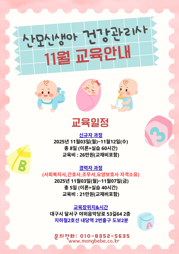2025년 11월 산모신생아건강관리사 신규/경력 양성교육 안내